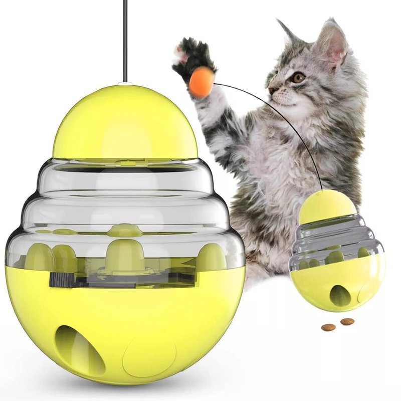 DARRLY&JAVEN Cat Toy Cat Treat Ball Toy Cat Treat Dispenser Cat Food Puzzle Cat Food Ball Food Dispenser Ball for Cats (Yellow)