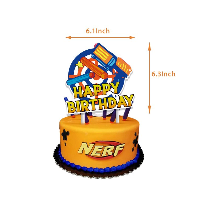 - Package Includes: 1* Dart war happy birthday banner, 1 * dart war happy birthday cake topper,12 * dart war cupcake toppers, 18* dart war balloons, 1 ribbon, 1 dispensing. Suitable for dart wat themed party decorations.