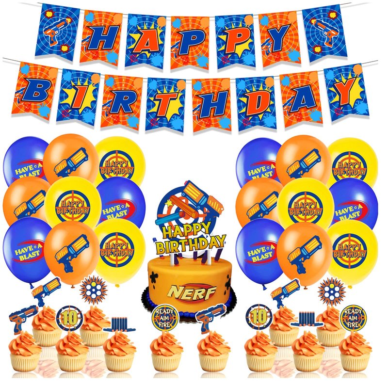 Dart War Party Decorations Dart War Birthday Party Supplies Includes Dart Happy Birthday Banner, Cake Topper, Cupcake Toppers, Balloons for Dart War Party Favors