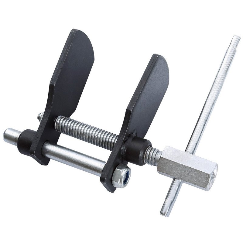 - Use with: This brake caliper press tool is fitted with tommy bar but can be used with 1/2'' drive ratchet wrench or 0.83'' spanner. Chemically blackened steel spreader plates. (2"x2-1/4") Each plates, Max Spread 3-1/4".