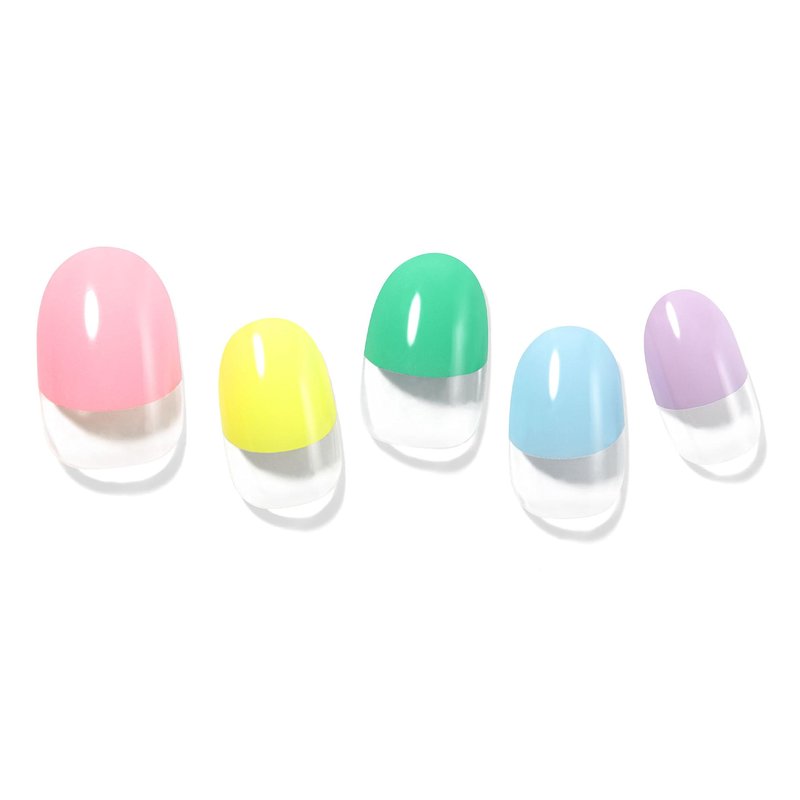 - CANDY VILLAGE: A little something to satisfy your sweet tooth! Semi-cured pastel gel strips featuring a half-moon design with mega volume and maximum finish