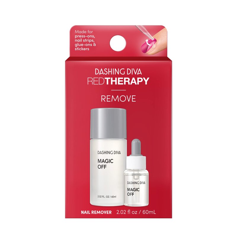 Dashing Diva Red Therapy Magic Off Nail Remover-Acetone Free Nail Adhesive Remover-Gentle Nail Solvent Compatible with Magic Press,Gloss and Glaze-2 x 1.01 Fl Oz,Clear