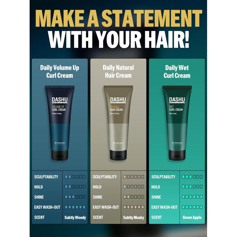 - HYDRATE AND DEFINE. DASHU Daily Volume Up Hair Curl Cream is enriched with Vegetable Oil and Vegan Protein Ingredients, providing intense moisture for brittle and down-curl hair. Experience a natural and light hold without stickiness, defining your curls for a bouncy look.