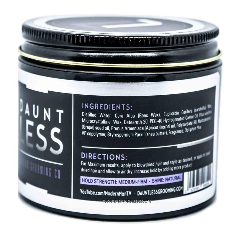 This Wax Cream features Dauntless Modern Grooming Co.'s signature line fragrance, "Fearless", which is a smooth cologne-type scent that was developed for the line by White Label Grooming.