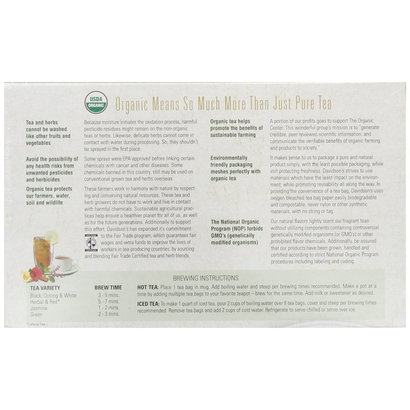 - TRUST OUR TEA: Davidson's Organics was the first purveyor of fine organic teas. Since 1976, we’ve worked tirelessly to develop blends that are true reflections of their names, while being committed to sourcing healthy ingredients grown by generations of skilled small farmers. Enjoy Davidson's Organics, the organic tea that sets the standards for the highest quality.
