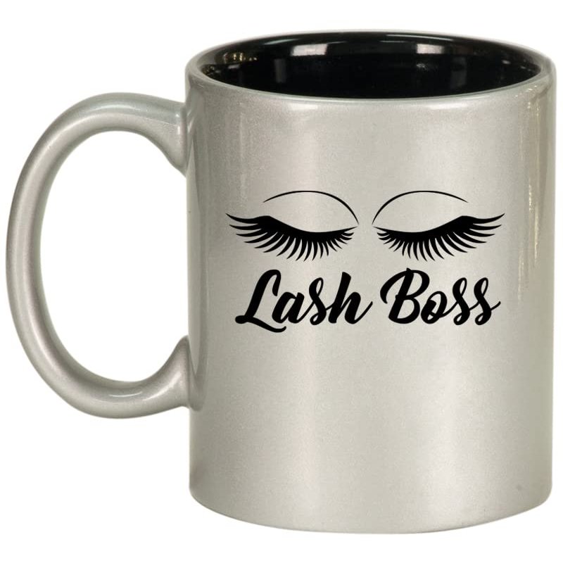 Daylor Lash Boss Makeup Lash Extension Artist Ceramic Coffee Mug Tea Cup Gift (11oz Silver)