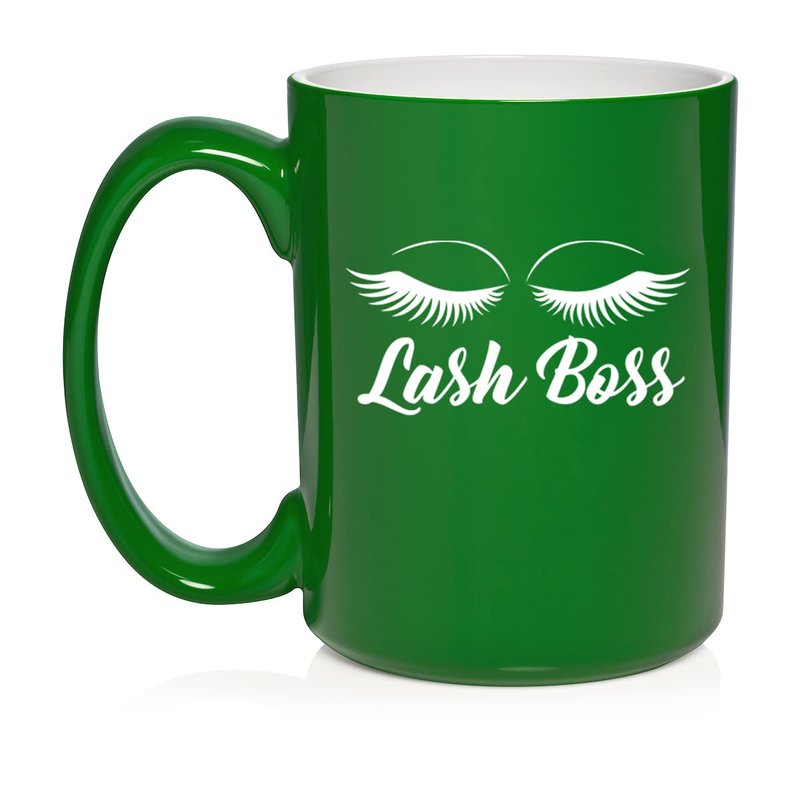 Daylor Lash Boss Makeup Lash Extension Artist Ceramic Coffee Mug Tea Cup Gift (15oz Green)