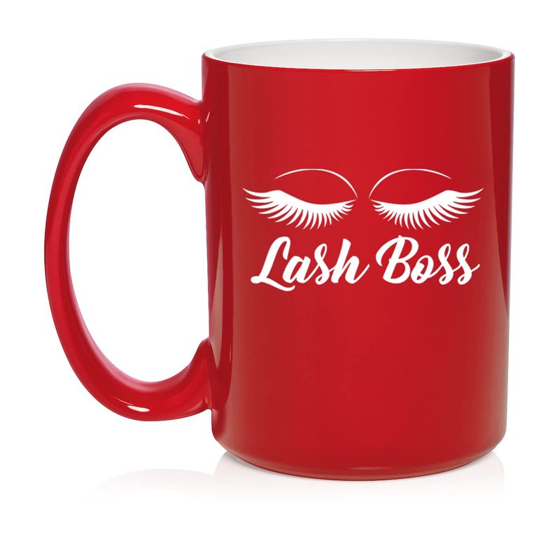 Daylor Lash Boss Makeup Lash Extension Artist Ceramic Coffee Mug Tea Cup Gift (15oz Red)