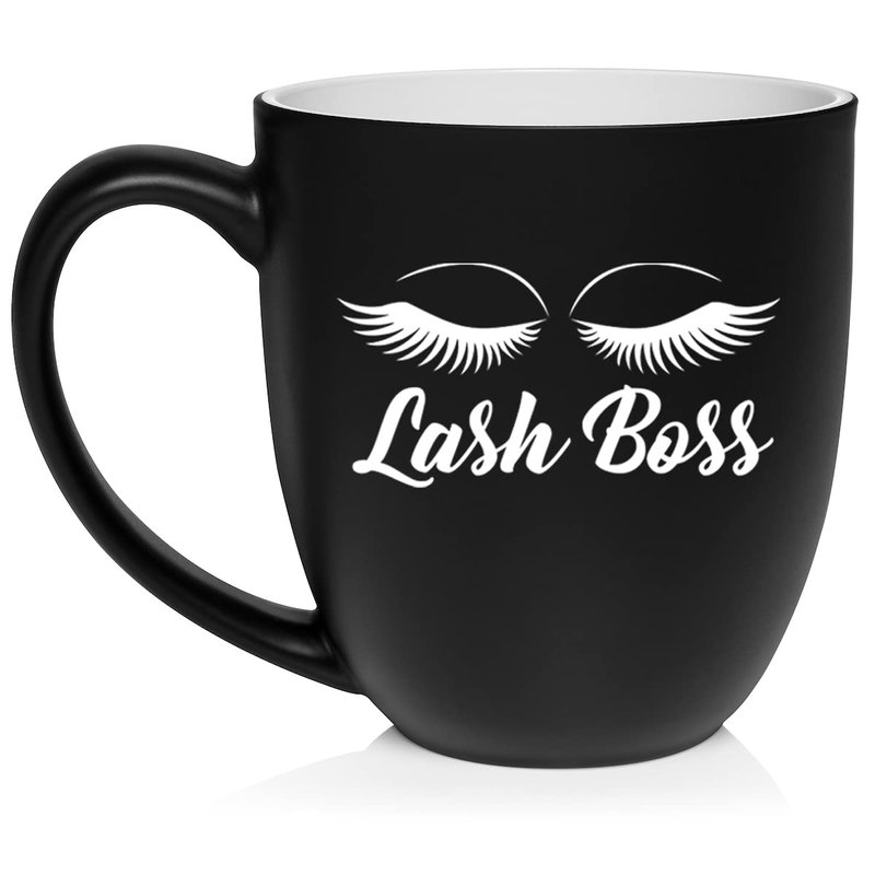 Daylor Lash Boss Makeup Lash Extension Artist Ceramic Coffee Mug Tea Cup Gift (16oz Matte Black)