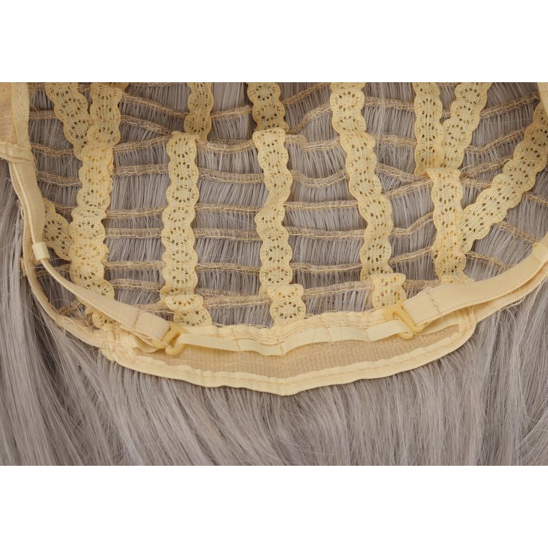 - Packag:Wig*1,Eye Mask*1,Hair Clip*1.Long straight grey hair + eye-covering left angled bangs + dark gray gradient at the end of the hair.