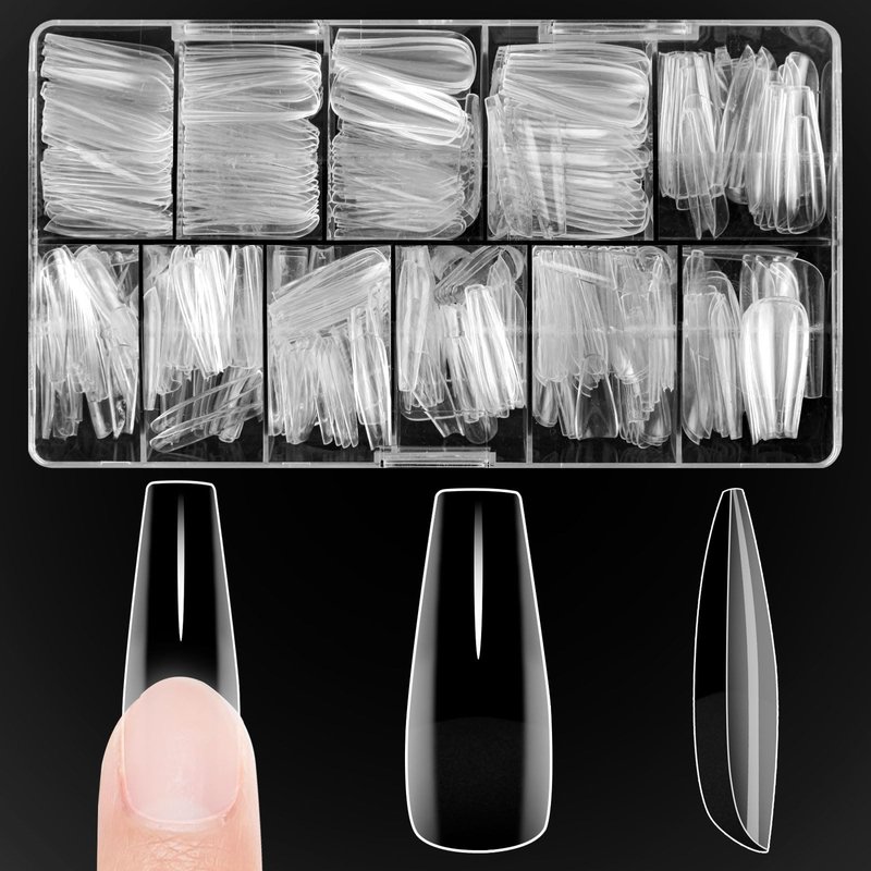500 PCS Long Coffin Nail Tips, 10 Sizes Full Cover Gel Nail Tips, Press on Clear Nail Tips for Nail Extension, Pre Shaped Nail Tips for DIY Nail Salon 【PROFESSIONAL MATERIAL】High quality traceless gel nail tips that are lightweight, thin, and seamlessly soft. They are resilient and do not easily break when folded. These gel nail tips naturally adhere to the nail surface, odorless, and pose no harm to your nails. 【EASY APPLICATION】Simply apply glue onto the nail tips, press it onto the appropriate nail for 30 seconds, and unleash your creativity for DIY nail art. Perfect for at-home nail salons. 【10 SIZES AVAILABLE】We provide 10 different sizes of clear nail tips to match your nails. Each size comes with 50 pieces, ensuring you have an ample supply for your needs. Each clear nail tips is coded with a size number at the tip, making it easy to find the perfect fit. 【NAIL SALON AT HOME】Transparent nail tips are ideal for DIY creations at home with friends. Craft your unique nail style and stand out from the crowd. 【LONG LASTING EFFECT】When applied correctly, these nail tips can last for more than three weeks. Gather your family and friends for a home nail salon session and enjoy the pleasure of DIY nail art!