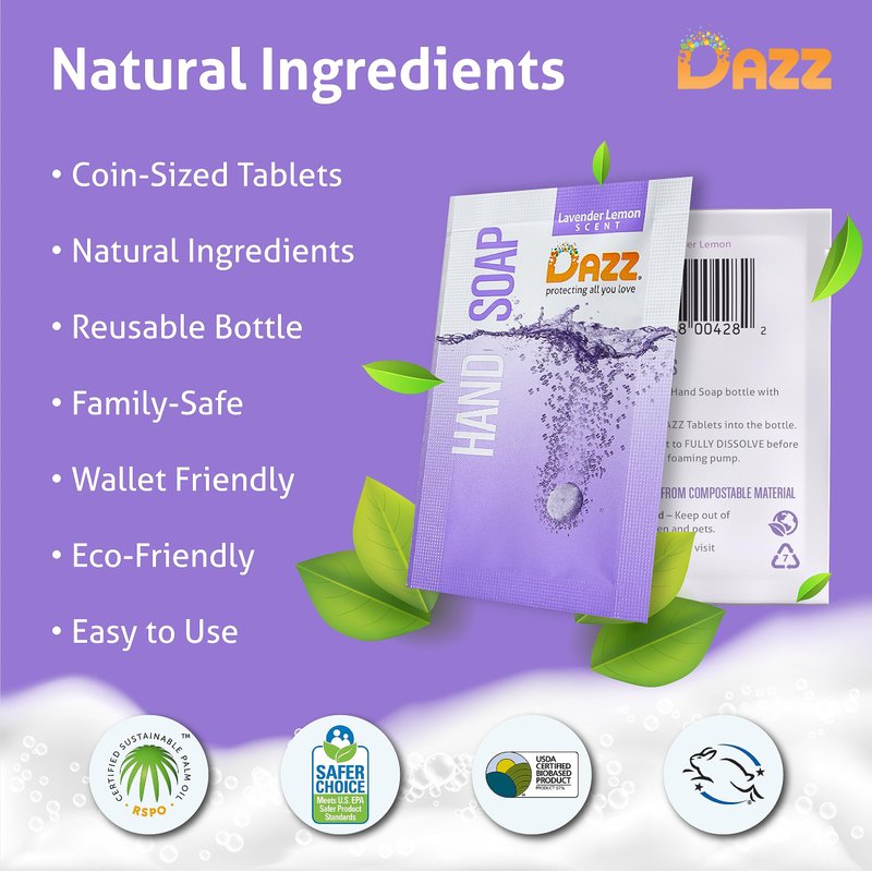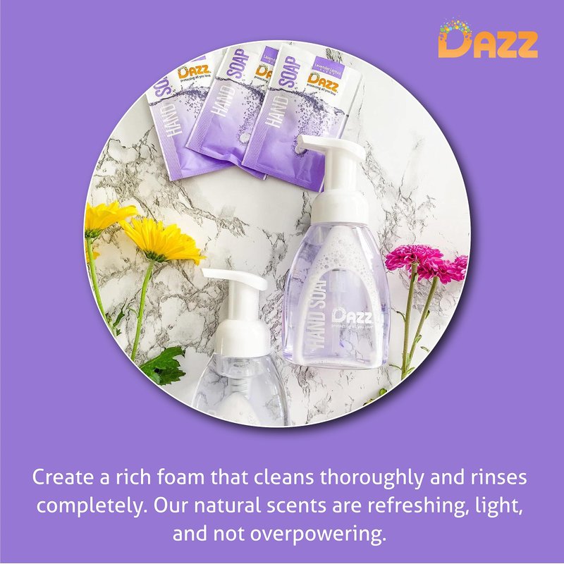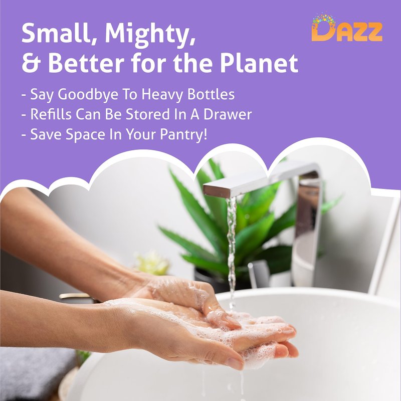 Step into the world of eco-friendliness with DAZZ, where refilling home cleaners not only saves you dozens of plastic bottles per year but also keeps more money in your pocket. Just refill foaming hand soap in the reusable foaming hand soap dispenser and let the magic happen. And itâ€s not just about the incredible savings.With DAZZ you get to enjoy the liquid foaming hand soap experience that makes a positive difference.