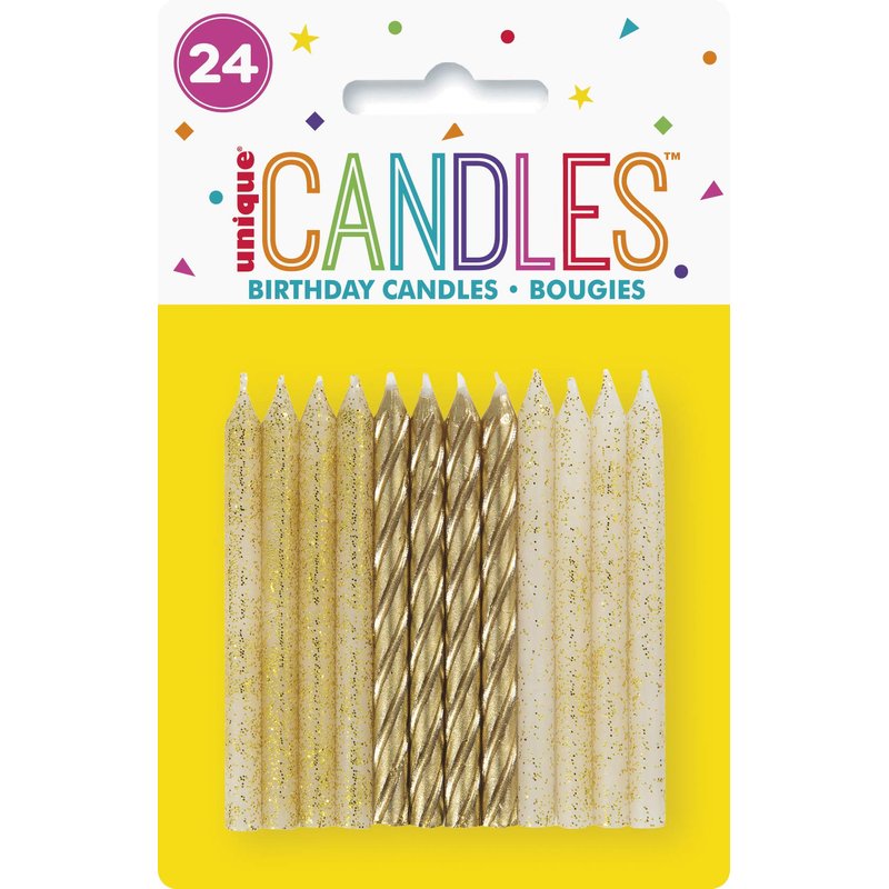 Dazzling Glitter & Gold Spiral Birthday Candles - 24ct Assorted Pack - Premium Quality, Long-Lasting & Elegant Design - Ideal for All Occasions