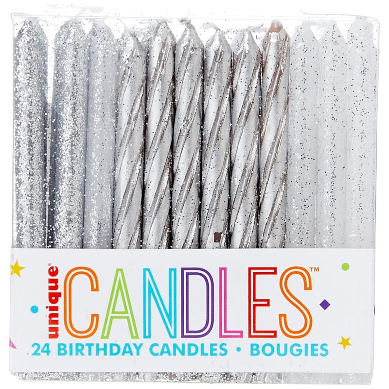 Dazzling Glitter & Silver Spiral Birthday Candles - 24ct Assorted Pack - Premium Quality, Long-Lasting & Elegant Design - Ideal for All Occasions