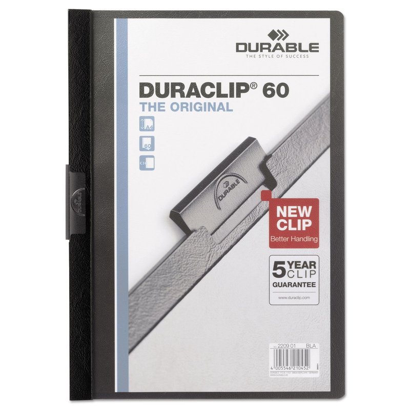- Durable 221401 Vinyl DuraClip Report Cover w/Clip, Letter, Holds 60 Pages, Clear/Black