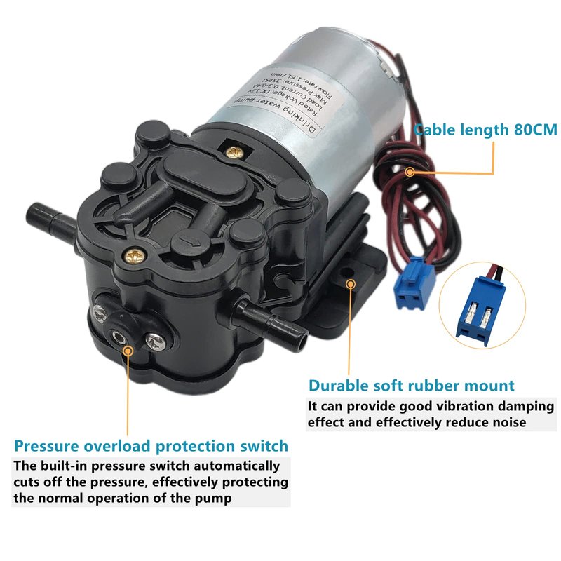 DC 12V Water Dispenser Water Pump 1.6LPM 35PSI Self-priming 1.3m, Suitable for Water Dispenser, Cooler, Drinking Water System Projects