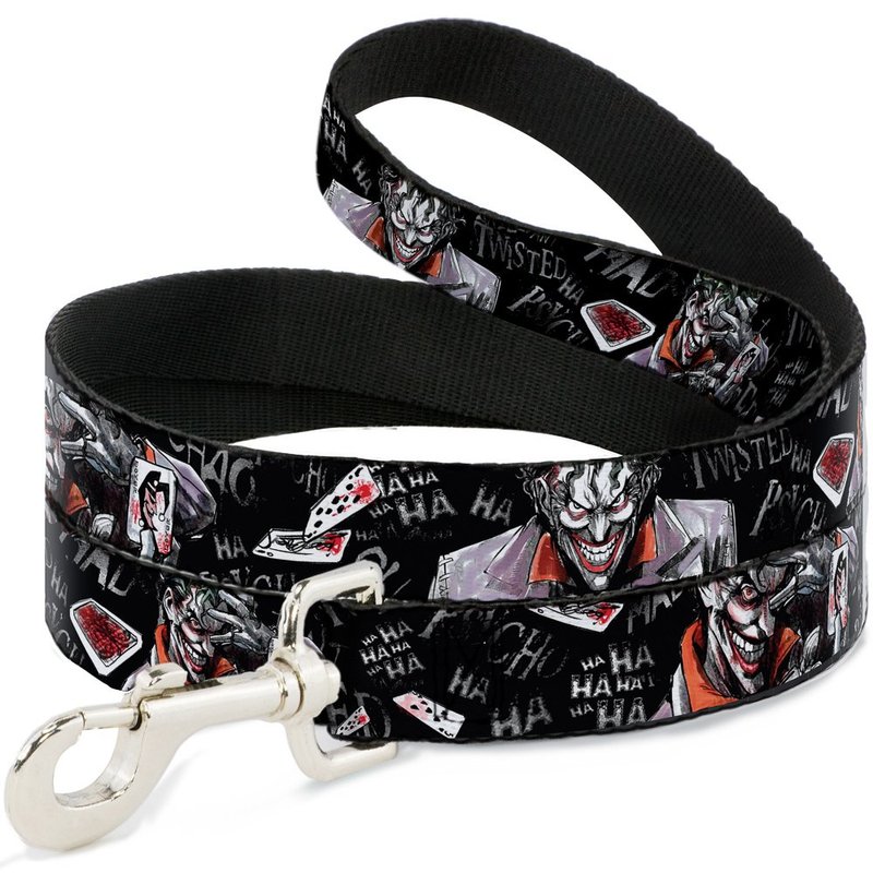 - Style: Buckle-Down Pet Leash - Joker BRILLIANTLY TWISTED PSYCHO 2-Poses/Cards Black/Grays - 6 Feet Long - 1" Wide