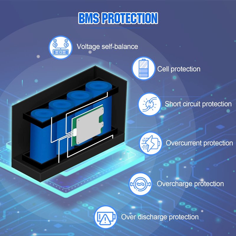 - [100% Protection]: Built-in BMS(Battery Management System) protects the cell from getting damage like: overcharge, over-discharge, short-circuit. And keep balance between battery cells. Operating Temperature: Charge: 0°C--50°C; Discharge: -20°C--55°C