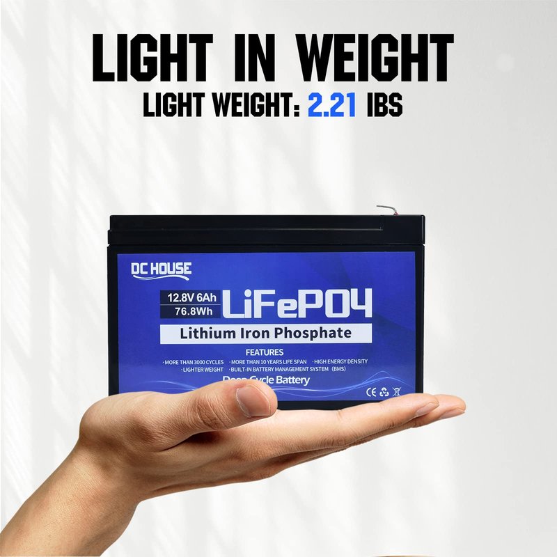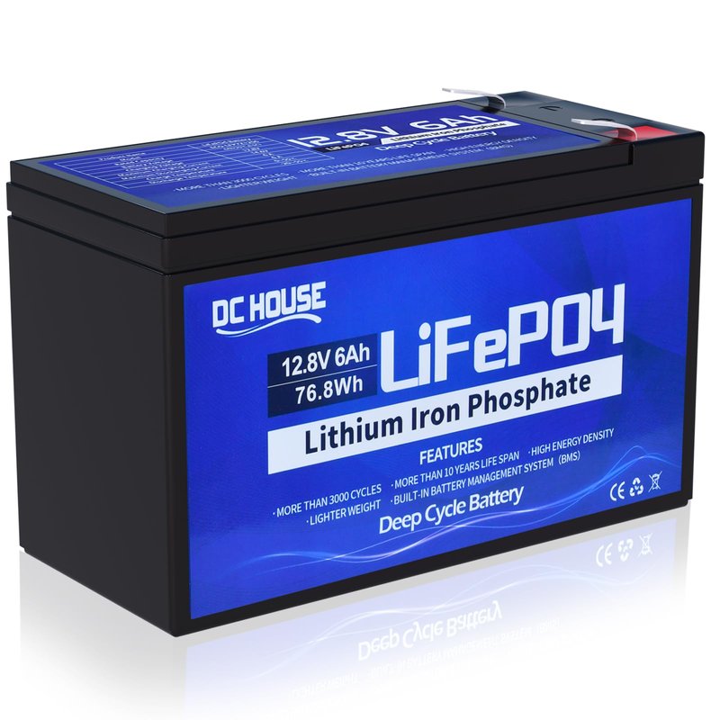 DC HOUSE 12V 6Ah Rechargeable LiFePO4 Lithium Iron Phosphate Battery with 3000+ Times Deep Cycles and BMS Protection for Fish Finder, Power Wheels, Scooter, Light, Kids Car,UPS