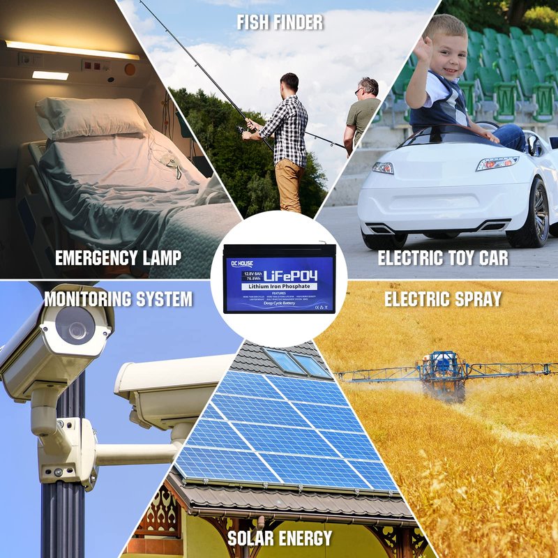 - [Wide Application]: LiFePo4 lithium battery is the most stable battery and it is perfect for energy stockage, outdoor application(fish finder), lighting , golf carts, children's car, lawn mower, solar panel or used as backup power supply etc. It couldn't be used in motor starter battery.