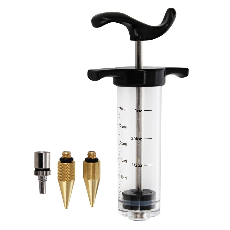 - MAINTENANCE: Moisten O-ring before inserting plunger and screwing brass tip into barrel; Do not allow glue to dry in the injector (injector may be immersed in water to prevent glue from hardening); Clean well after use; Removable plunger and brass nozzle allow you to clean thoroughly with warm water and brush (not included) (do not use solvent); Regularly lubricate and use cooking oil on O-ring for a smooth, airtight seal
