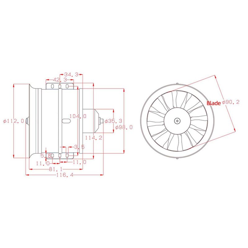 - High-Quality ducted fan:fan make of high-quality engineering materials,Sturdy body,stable structure.Removable guide ring design,Adapt to a variety of models.