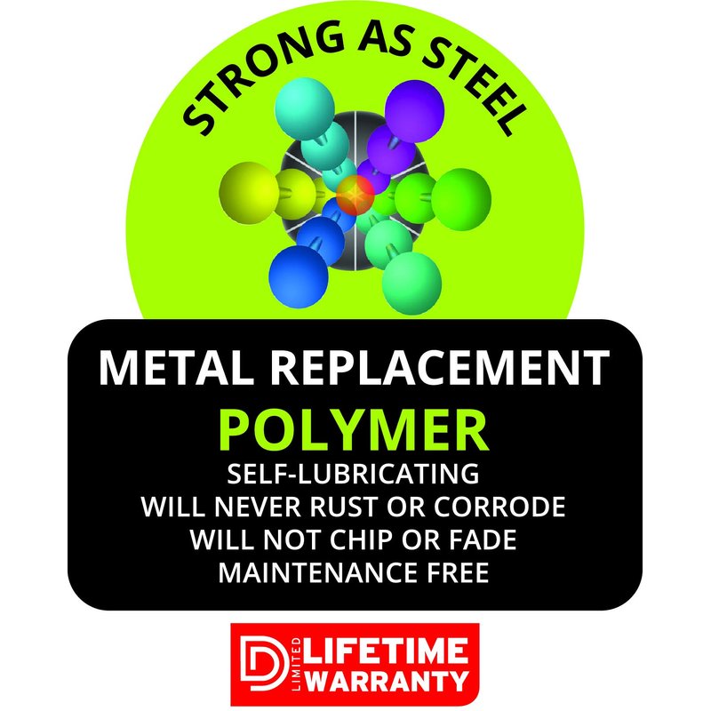 - INDUSTRIAL STRENGTH - Constructed of industrial strength "metal replacement" polymer and stainless steel components; will never rust