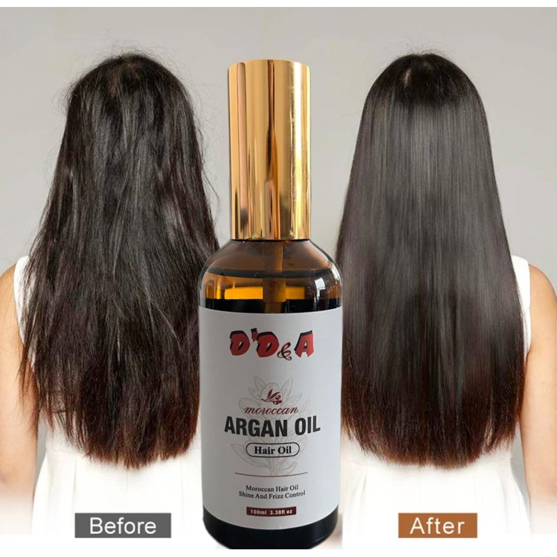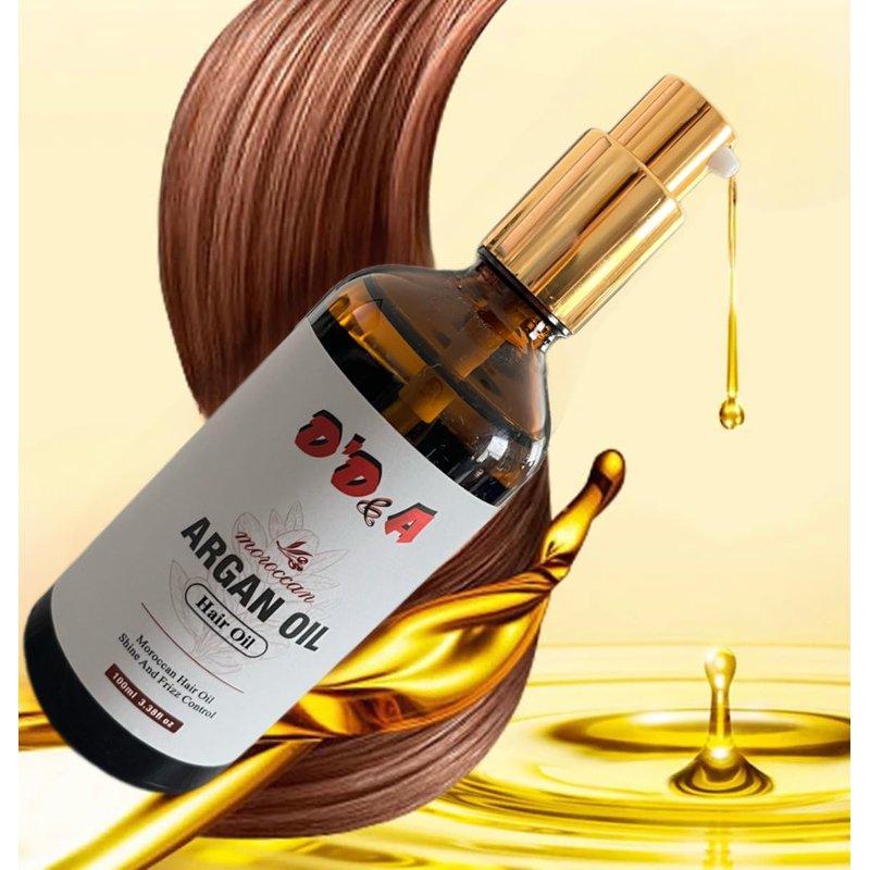 D'D&A Argan Oil, Moroccan Hair Oil, Shine and Frizz Control, Moroccan Argan oil in unique serun with instant absorption into hair and skin to create a beautiful shine and long term conditioning