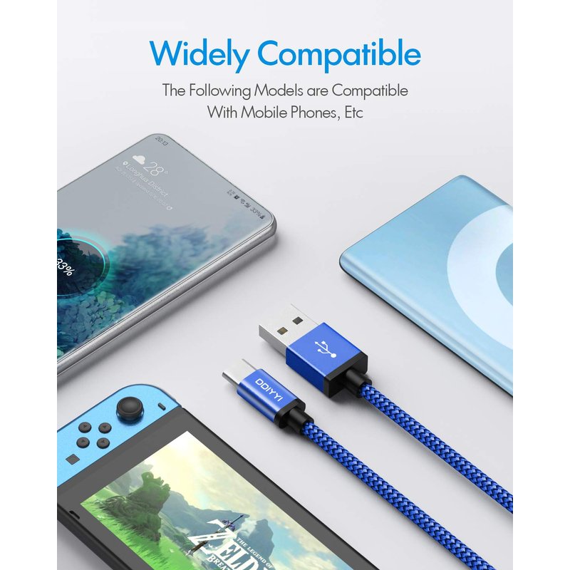- USB2.0 cable Safe fast charging - With CE, FCC, PSE and ROHS certificates that comply with appropriate standards, usbc charger 10 ft cable allows you to charge safely, stably and quickly
