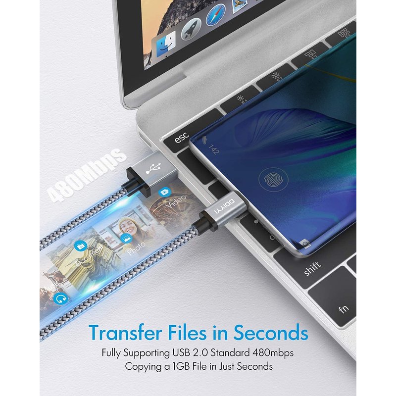 Data transfer and power charging 2 in 1, support QC3.0/QC4.0 Fast Charging Transfer up to 480Mbps.