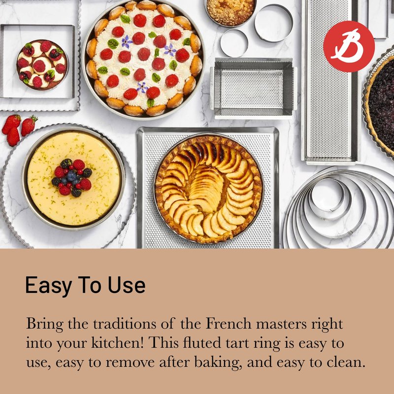 - SQUARE TART RING - Want a better way to bake tarts & pies? We created the first-ever perforated fluted tart ring & this version offers the same great results. With this ring, you can easily bake beautiful tarts, just like the French masters.