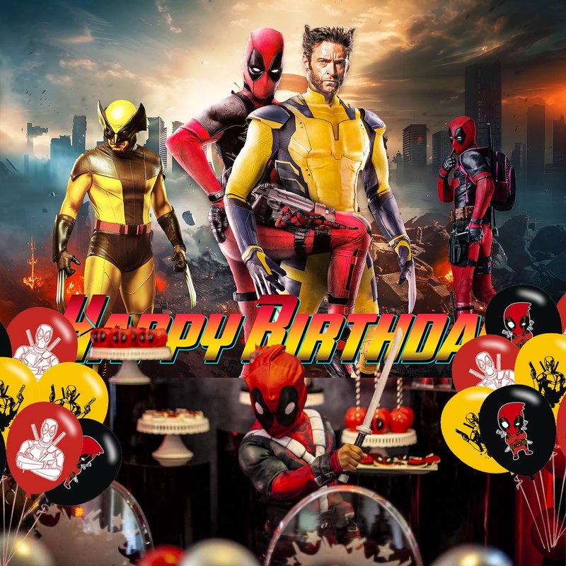 Dead-Pool Party Supplies,Cartoon Dead-Pool 3 Party Decorations Includes Banner, Cake Toppers, Balloon for Anime Party Decorations