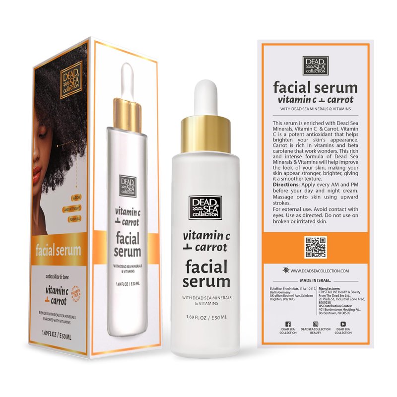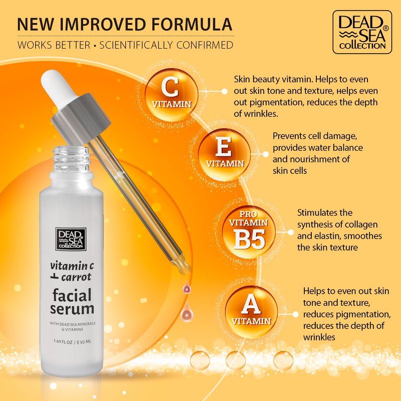 Dead Sea Collection Vitamin C & Carrot Serum For Face - Hydration Facial Serum - Skin Serum for Smooth and Moisturized Skin - Enriched with Dead Sea Minerals and Vitamins - 1,69 Fl. Oz