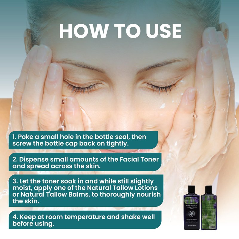 - DIRECTIONS: Wash or bathe using Dead Sea Tonic Mineral Body Wash, and dry the skin. Dispense small amounts of this skin care toner and spread. Let it soak in to thoroughly nourish the skin.