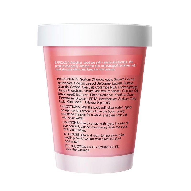 - 【Detoxifying】: The pink salt crystals found in body scrubs help detoxify the skin by balancing its pH levels and minimizing pores to restore smooth, soft texture, with colors ranging naturally from light to dark pink. They also function as an underarm detox scrub and dark spot remover for the body, aiding in evening out skin tone and diminishing the appearance of blemishes.