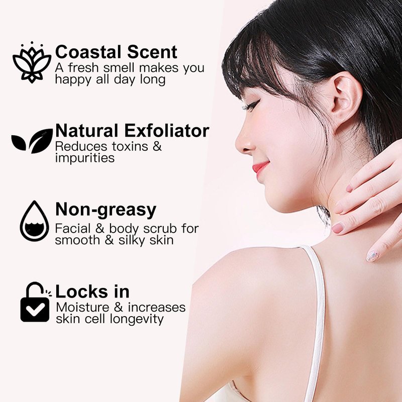 - 【Gentle Cleansing & Exfoliating & Moisturizing】: Our body scrub helps restore your natural skin by scrubbing away unwanted toxins and dead skin cells, effectively reducing the appearance of acne, stretch marks, scars, spider veins, cellulite, blackheads, wrinkles, fine lines, dark spots, shaving bumps, excess oil, and more. It works as an exfoliating body wash, removing impurities and dead skin cells without stripping the skin's natural moisture.