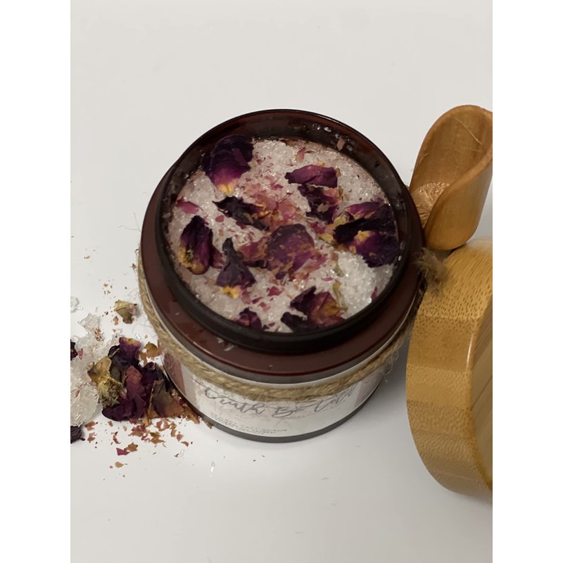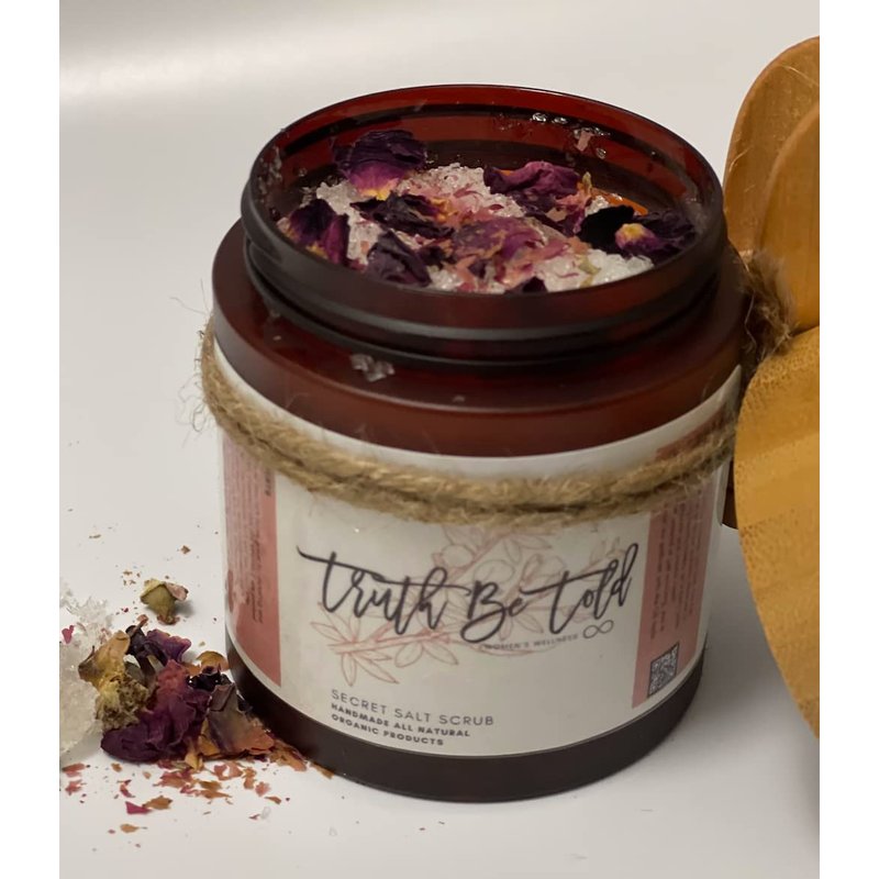 Natural Dead Sea salt combined with organic oils create our Salt scrub that gently buffs dry skin while delivering 24-hour moisture. All scrubs are handmade with essential oils. Exfoliate and detox skin, while precious oils nourish. Not to mention the scent is everything! The perfect mix of fruity and floral. A great feminine scent. Apple, Mint, and Jasmine make a good mix.