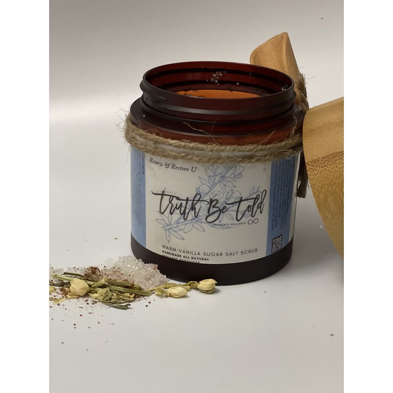 Natural Dead Sea salt combined with organic oils create our Salt scrub that gently buffs dry skin while delivering 24-hour moisture. All scrubs are handmade with essential oils. Exfoliate and detox skin, while precious oils nourish. Not to mention the scent is everything! This is a classic scent elevated. The smell is delightfully rich, deep, delicious, warm, and cozy. The best part? All of our scents are long-lasting.