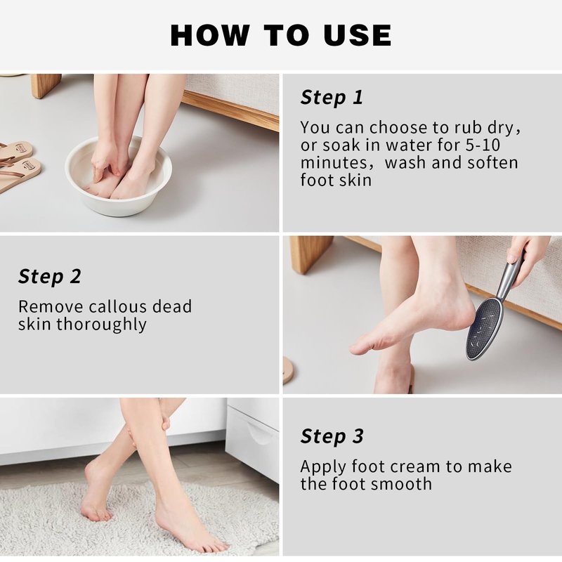 - The foot scraper of dead skin remover for feet is made of comfortable ABS material, which is convenient to hold, and easily removes dead skin from the entire foot