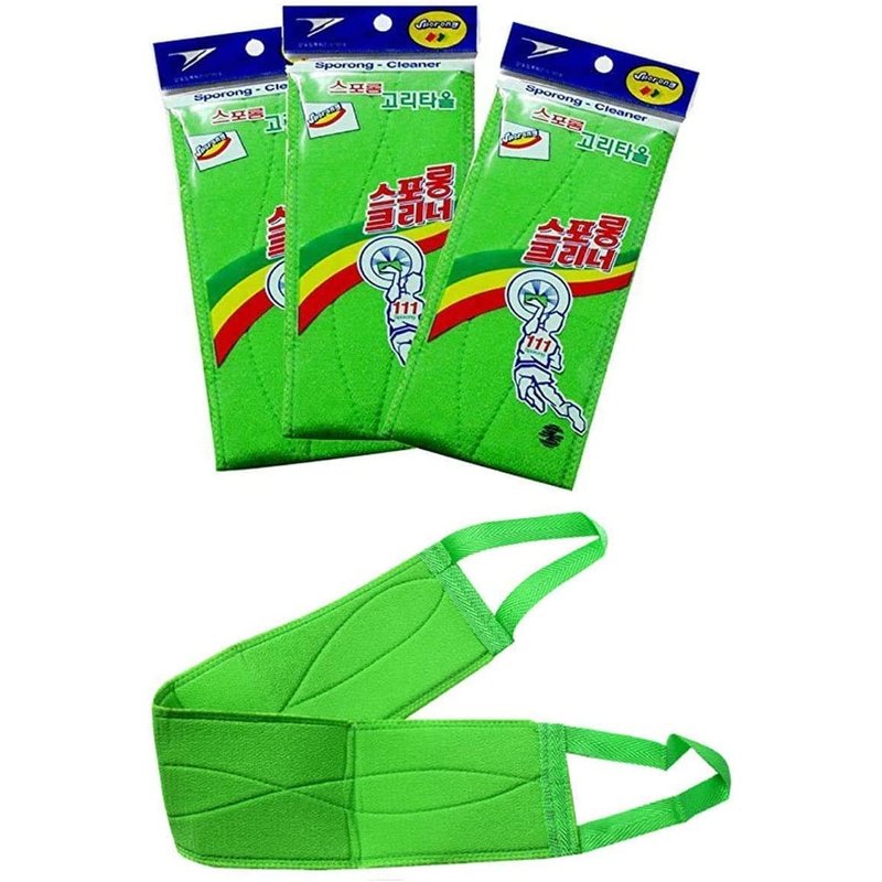 DEAD SKIN x (3 pcs) Long Exfoliating Towel with Straps Green Back Washcloth Bath Wash Towel Korean Italy Towel Back Scrubber for Shower Extended Length Bath Towel Shower