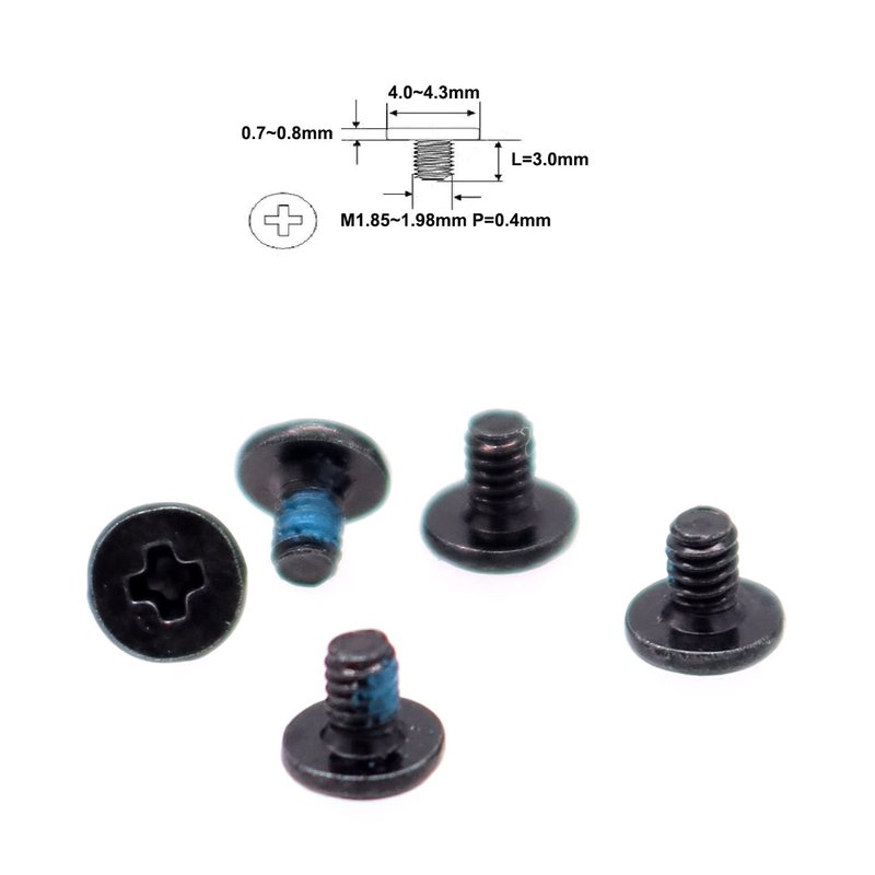 This is the little screw mainly used on Laptop, WiFi cards, M.2 SSD NVMe Heatsink, Screen Brackets, Multi io Boards, Webcams, Keyboards, and even some Palmrests and Base plastics. Specification: Material: Steel Finish: Nickel Plated Groove Type: Phillips Thread Thread size: M2 x 3mm Thread Pitch: 0.4 mm / 0.016" Screw Head Diameter: 4.0~4.3 mm Head Thickness: 0.7~0.8 mm