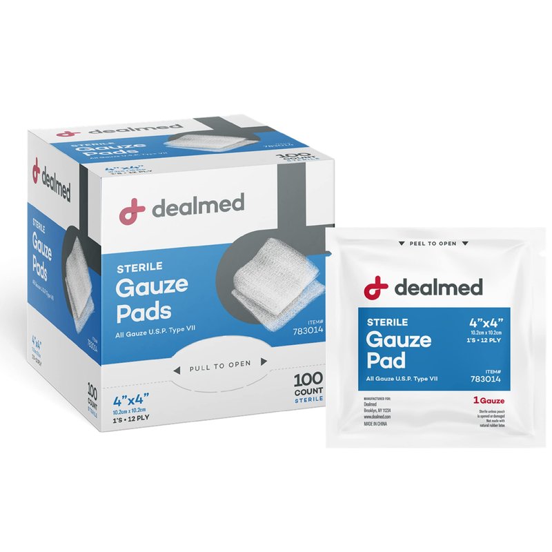 - Dealmed Sterile Gauze Pad Wound Dressing: The Dealmed Sterile Gauze Pads are designed with high grade USP Type VII cotton that withstands both wet-to-moist and wet-to-dry dressing. They are well suited for any small wounds, cuts, abrasions, ulcers, and more. Depending on wound size, the gauze pads can be easily cut to the prefct size that is needed.