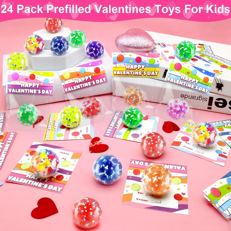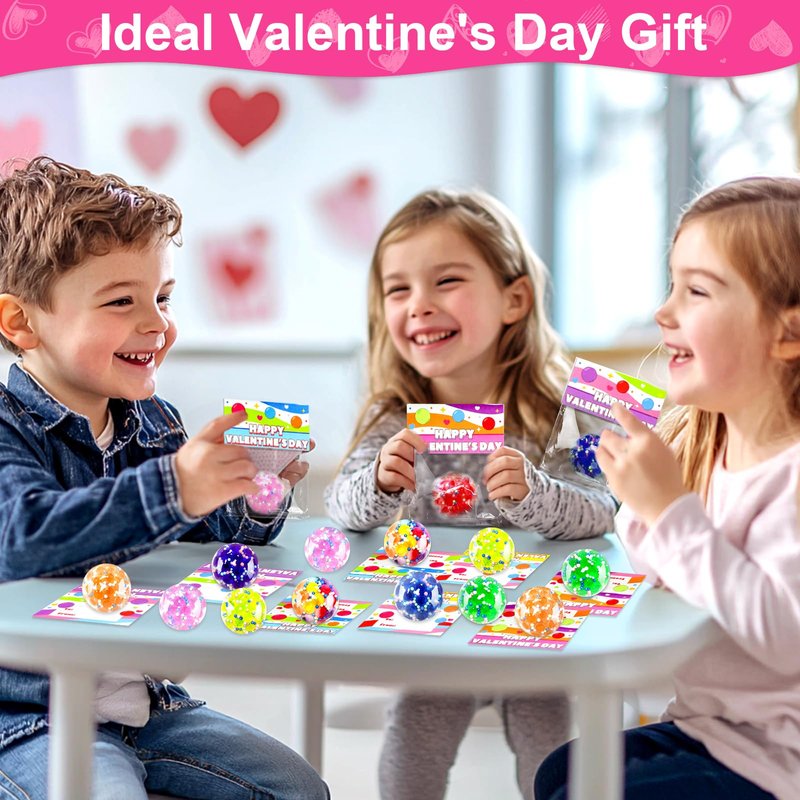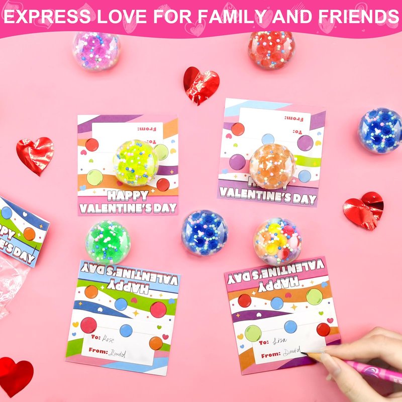 - Unique Children's Valentine's Day Cards: 24 Valentine's Day cards come with sweet wishes that perfectly match the squeeze balls. Children can write names and share love with friends.Create exquisite Valentine's Day gifts by yourself, learn to share love