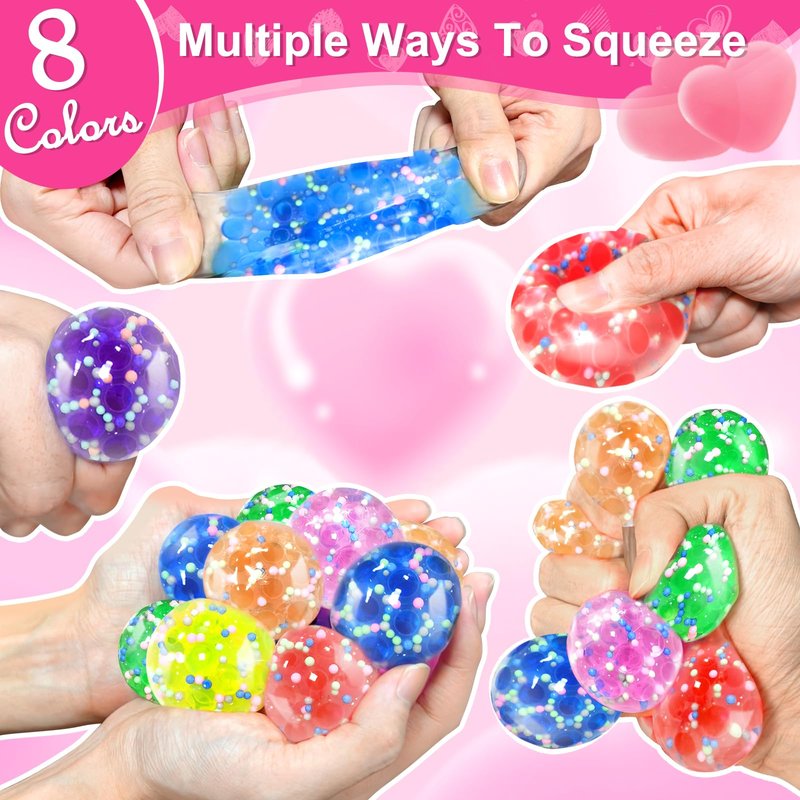 - 24 Packs Valentine's Day Gifts: Include 24 soft, glittering stress balls in 8 colors, 24 unique Valentine's Day cards, a stapler, and a box of staples. The quantity is perfect for the whole class and a great hit for unique Valentine's Day gift exchanges