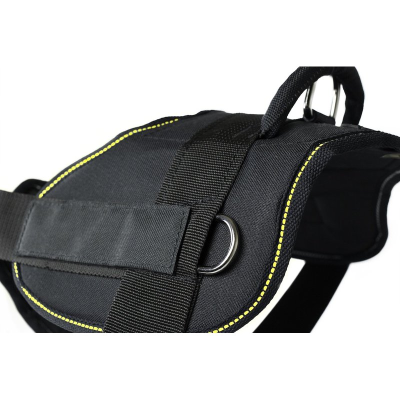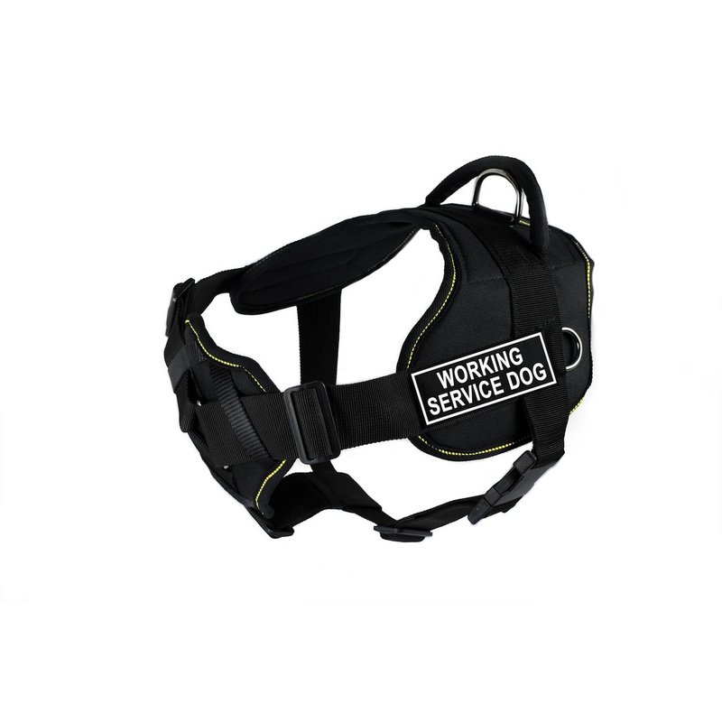 Dean & Tyler D&T FUN-CH WRKSD YT-M Fun Dog Harness with Padded Chest Piece, Working Service Dog, Medium, Fits Girth 71cm to 86cm, Black with Yellow Trim