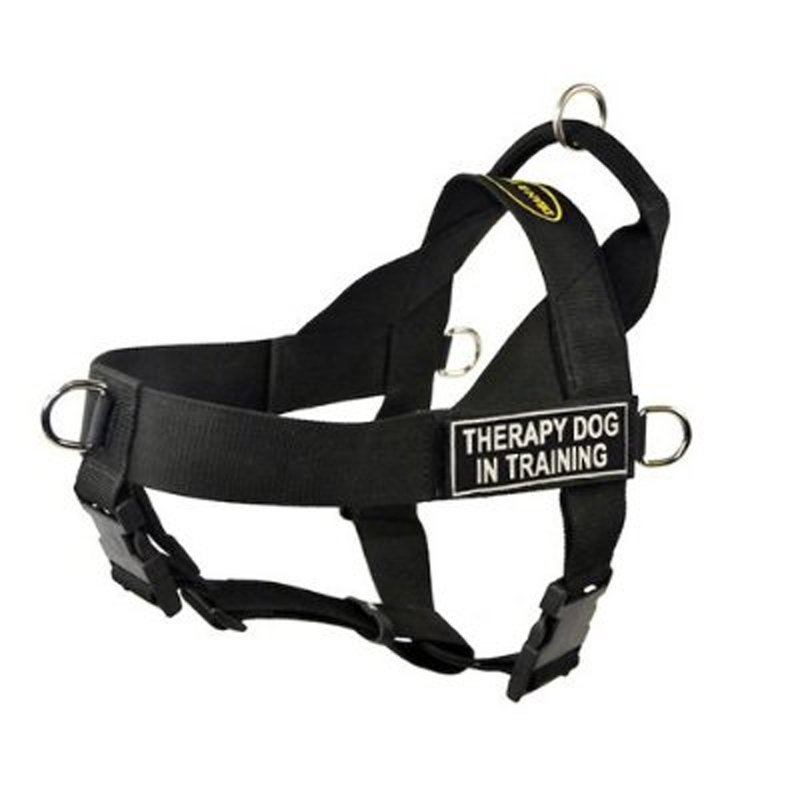 Dean & Tyler DT Universal No Pull Dog Harness - Adjustable, Strong Neoprene Nylon - for Small Breeds - Removable Patches - Size XSmall - Girth Size 21"- 25" - Includes Therapy Dog in Training Patches