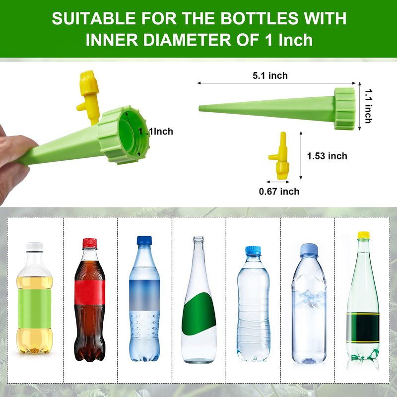 - š§ćFOR 500ML BOTTLESćThe indoor watering can suitable for 1 inch/2.5cm inner diameter of the bottle. We suggest to use the 500ml bottle, watering spikes for indoor and outdoor plants, which is more suitable for standing upside down. (Measure the inner diameter of the bottle including the thread size before installation).