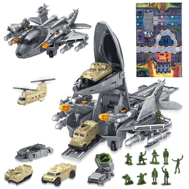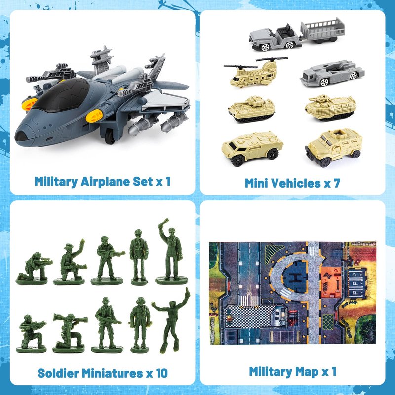 deAO Military Airplane Toys for Boys,Army Toys Fighter Jet with 8 Vehicles,10 Soldier Amry Men,19PCS Airplane Tanks Toys,Great Military Toys Gift for 3 4 5 6 Boys Girls Kids