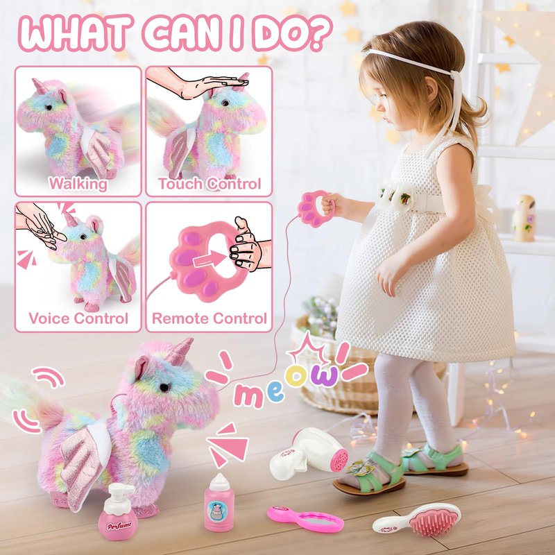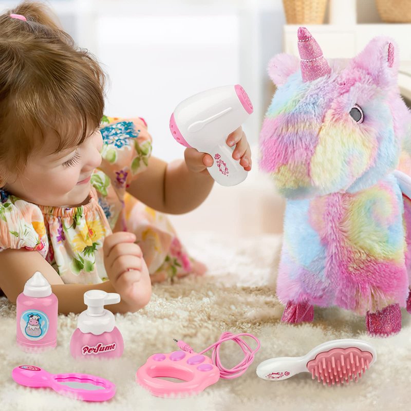 - 【Role Play Toy】You can allow you child to be responsible of taking care of a pet. This play set is the perfect way to help your child to develop an understanding of nurture and helping. The pet toy can walk and make noises.