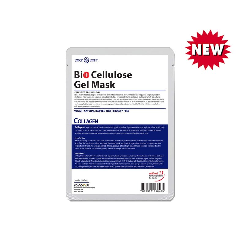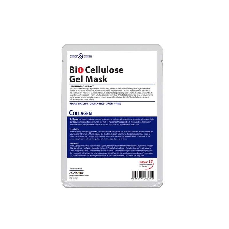 Dear & Derm Bio Cellulose Gel Mask, Skincare Face sheet mask, Facial sheet mask - Collagen x 10 sheets
